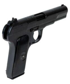 The Tokarev Type 54 Military Surplus is a classic firearm that combines historical significance with modern performance. Chambered in 7.62x25mm Tokarev, this pistol features a 4.50″ barrel and an overall length of 7.75″, making it both compact and powerful. Curio & Relic eligible, it boasts an 8+1 round capacity and a 1:10” RH twist with four rifle grooves for superior accuracy. The short recoil actuated locked breech single-action mechanism ensures reliable operation, while the matte blued steel finish adds durability and a timeless look. Textured black plastic grip panels with a star logo provide a secure hold, complemented by a fixed blade front sight and drift adjustable rear sight for precise targeting. The integral blade safety lever (installed for importation) and a 9-lb. 4-oz. trigger pull ensures safety and control. Weighing 30 oz. with one empty magazine and standing 5.10″ tall, the Tokarev Type 54 is a robust and reliable choice for collectors and enthusiasts alike.