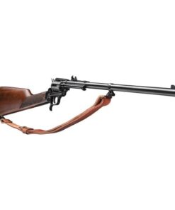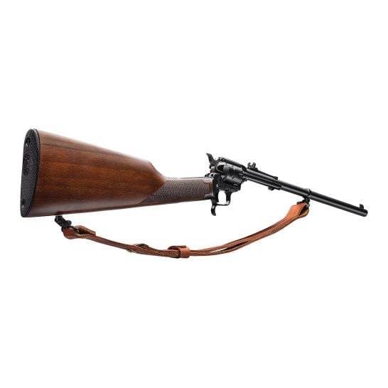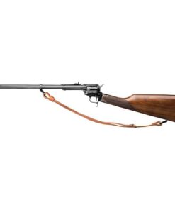 Introducing the rough Rider Rancher carbine chambered in 22 LR, featuring a 16 inches barrel, a 6 round capacity and a beautiful walnut stock. This latest addition to the heritage product line combines the versatility of a rifle with the classic appeal of a revolver, ensuring effortless handling and portability. Complete with an adjustable buckhorn sight and a leather sling, the Rancher enables you to effortlessly and precisely manage your ranch.
