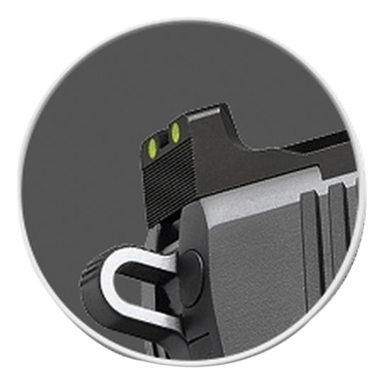 - Front cocking serrations on the slide offer additional control for quick press checks and slide manipulation