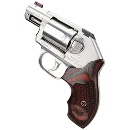 - The laminated wood Kimber logo grip adds a refined touch while ensuring durability and a secure hold