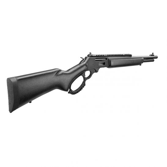The speed and accuracy of Marlin lever actions blacked-out and tricked out for the modern hunter. Our new Dark Series rifles feature a stealthy-tough black matte parkerized finish and a black-webbed hardwood stock, with a host of performance enhancements, including a threaded barrel, big-loop lever and XS Lever Rail with ghost ring peep that also accommodates a wide variety of optics.