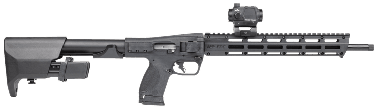 The New M&P FPC® showcases our brand new, compact, folding design. The in-stock magazine storage with a quick-release latch makes reloading convenient and quick. The M&P FPC® accepts any M&P® full-size or compact 9mm magazine. The M&P FPC® also comes with a carrying bag with additional storage and firearm securing straps. With a slim and compact design, this Pistol Cailber Carbine (PCC) can be stowed in small places making it very accessible. The ability to fold from the side makes sure that mounted optics aren’t disturbed, and it’s easy to deploy when needed. Magazine compatibility with the M&P® M2.0® platform gives this PCC a robust ecosystem available in the market today and rewards existing M&P® owners.