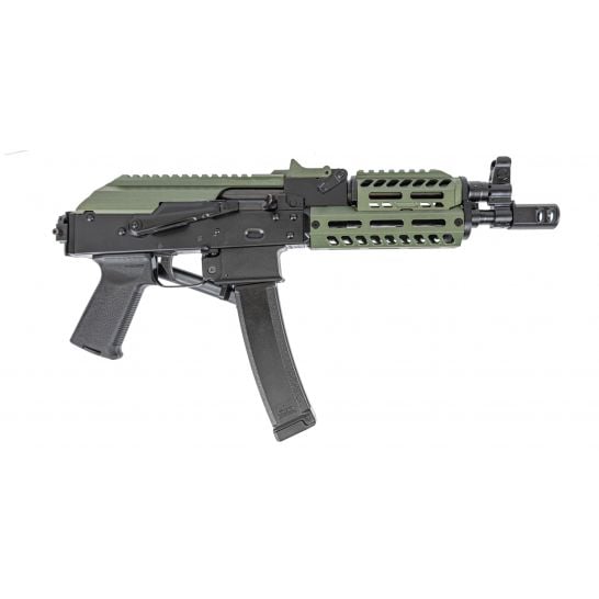Atlantic Firearms Shop is proud to introduce the new PSA AK-V! This new product has been designed based on the Vityaz-SN Russian submachine gun, with a few modern improvements. The PSA AK-V is a blowback-operated system to ensure a smooth cycling action. Following in the footsteps of our new PSA AK-47 GF3 models, the AK-V features a forged front trunnion and bolt/carrier. Our design utilizes the Palmetto State Armory U9 35 round magazine, and also features last round bolt hold open. The PSA AK-V can only be guaranteed to function with AKV U-9 magazines.