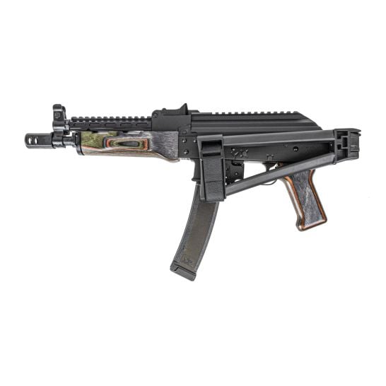 Atlantic Firearms Shop is proud to introduce the new PSA AK-V! This new product has been designed based on the Vityaz-SN Russian submachine gun, with a few modern improvements. The PSA AK-V is a blowback-operated system to ensure a smooth cycling action. Following in the footsteps of our new PSA AK-47 GF3 models, the AK-V features a forged front trunnion and bolt/carrier. Our design utilizes the Palmetto State Armory U9 35 round magazine, and also features last round bolt hold open. The PSA AK-V can only be guaranteed to function with AKV U-9 magazines.