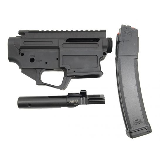 Palmetto State Armory’s AR-V Conversion Kit is everything you need to convert your PA-9 firearm to our new AR-V platform. This kit includes an AR-V Slick Side Upper, AR-V Lower Receiver, AR-V 9mm Bolt Carrier Group, and AK-V U9 35 Round 9x19mm Magazine.
