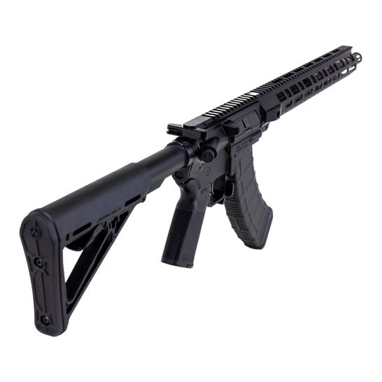 Upper: The KS-47 G2 upper receiver is precision machined out of forged 7075 T6 aluminum, and then hard coat anodized for durability. While retaining the look of a standard M4 upper, the KS-47 G2 upper is designed to work with the new Gen2 KS-47 lower. The upper features integrated over-insertion tabs to prevent the bolt from dragging on the magazine. This CMV 4150 barrel is chambered in 7.62×39 with a 1 in 10 twist and has a single, large feed ramp to accommodate the larger case diameter of the 7.62×39 round. The barrel is nitride treated for accuracy and durability and is finished off with a 5/8-24 thread A2-style compensator. The forward assist, dust cover, charging handle, and safety are all standard AR-15. This KS-47 G2 upper is finished off with a PSA 15″ Lightweight M-Lok Free Float Rail. The KS-47 G2 upper will not work with a standard AR-15 lower.