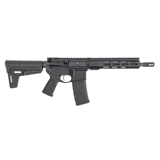 Barrel: Chambered in 5.56 NATO with a 1:7 twist rate, M4 barrel extension, and a carbine gas system this barrel features a phosphate finish for accuracy and durability. It is finished off with a PSA 9″ Lightweight Hex Full Picatinny M-Lok Free Float Rail, a .750″ diameter low profile gas block, and an A2 flash hider.