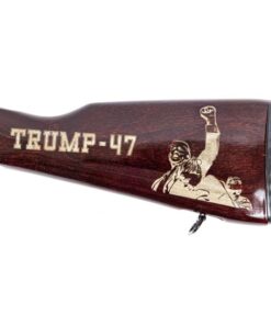 The barrel is a proprietary blend of hammer-forged chrome-moly vanadium made by FN that is referred to as “Machine Gun Steel” by virtue of its use in FN’s M249 and M240 weapons. The hammer forging process work hardens the steel, making it more durable. This 16″ barrel is magnetic particle inspected, to ensure quality and dependability and is pressed into a hammer forged 4340 AQ front trunnion to ensure the longevity AK-47’s are known for. The hardened steel 1mm receiver features a TiN-coated PSA EPT Fire Control Group and a side rail mount. The carrier is hammer forged and TiN coated. The front trunnion is engraved with GF5 to designate the new GF5 hammer-forged model. The rifle is finished with a classic Plum Gloss handguard, “Trump-47” engraved stock, and grip. This rifle ships with a 30 round magazine with engraved Seal of the President of the United States (where allowed by law).