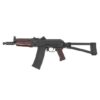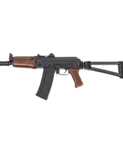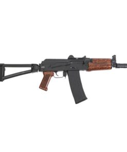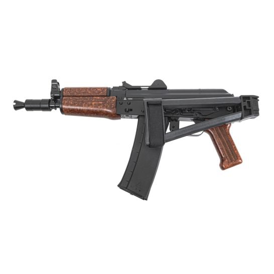 The Soviet Arms AKS-74U “Krinkov” pistol features a side folding rear trunnion, hinged dustcover, and short barrel for the most compact AK PSA has offered to date. This pistol is equipped with a black triangle side folding pistol brace, hinged dustcover with integrated rear sight, and “bakelite” wood furniture. The original AKS-74U was adopted in 1979 to bridge the gap between a sub gun and a full-length rifle. This Soviet Arms AKS-74U is chambered in 5.56×45 and still maintains all the charm and aesthetic of the original 5.45x39mm Krinkov, but in an easier to obtain caliber.