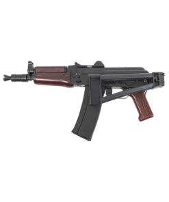 The Soviet Arms AKS-74U “Krinkov” pistol features a side folding rear trunnion, hinged dustcover, and short barrel for the most compact AK PSA has offered to date. This pistol is equipped with a black triangle side folding pistol brace, hinged dustcover with integrated rear sight, and red wood furniture. The original AKS-74U was adopted in 1979 to bridge the gap between a sub gun and a full-length rifle. This Soviet Arms AKS-74U is chambered in 5.56×45 and still maintains all the charm and aesthetic of the original 5.45x39mm Krinkov, but in an easier to obtain caliber.